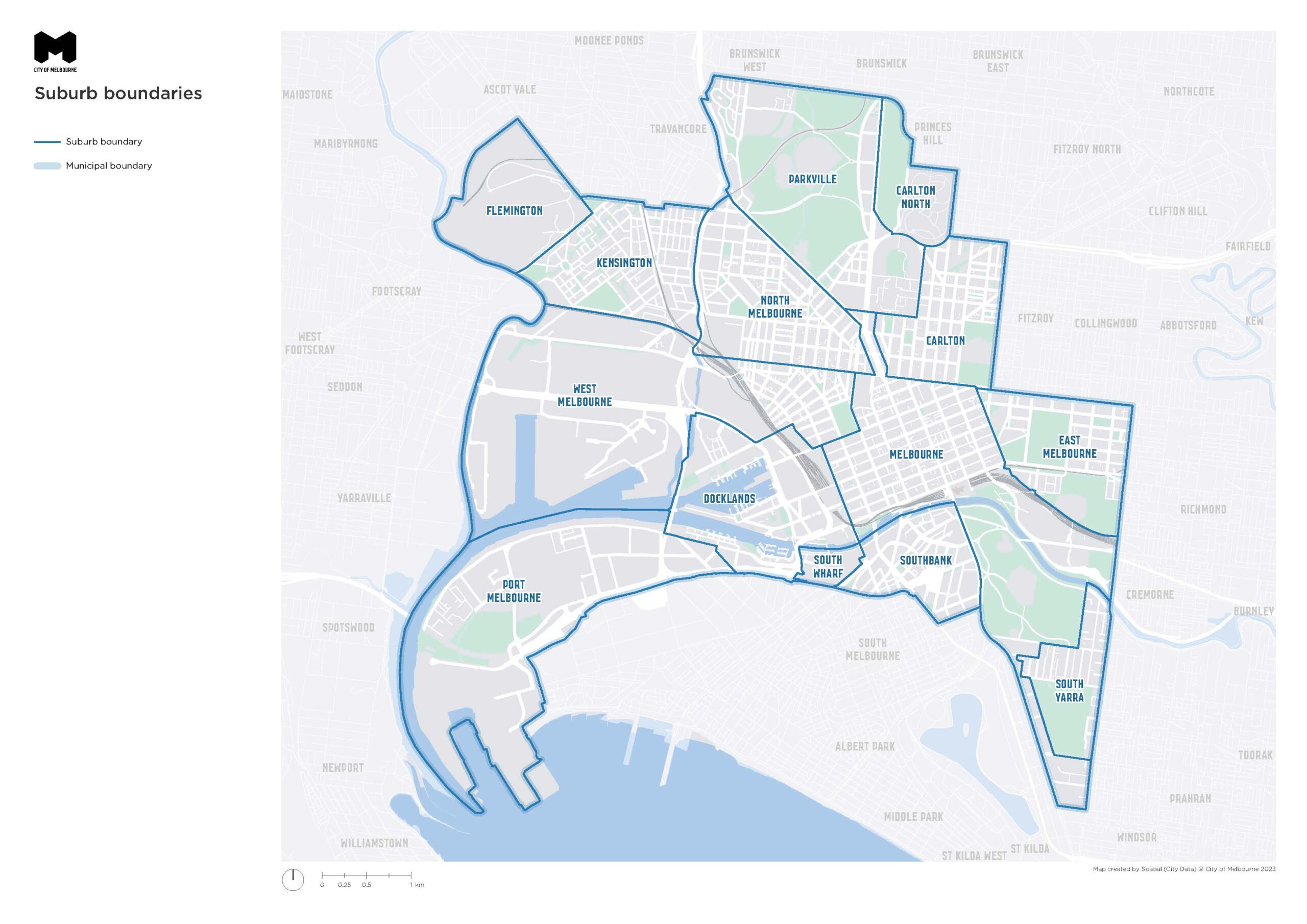 The suburbs that make up the City of Melbourne are: